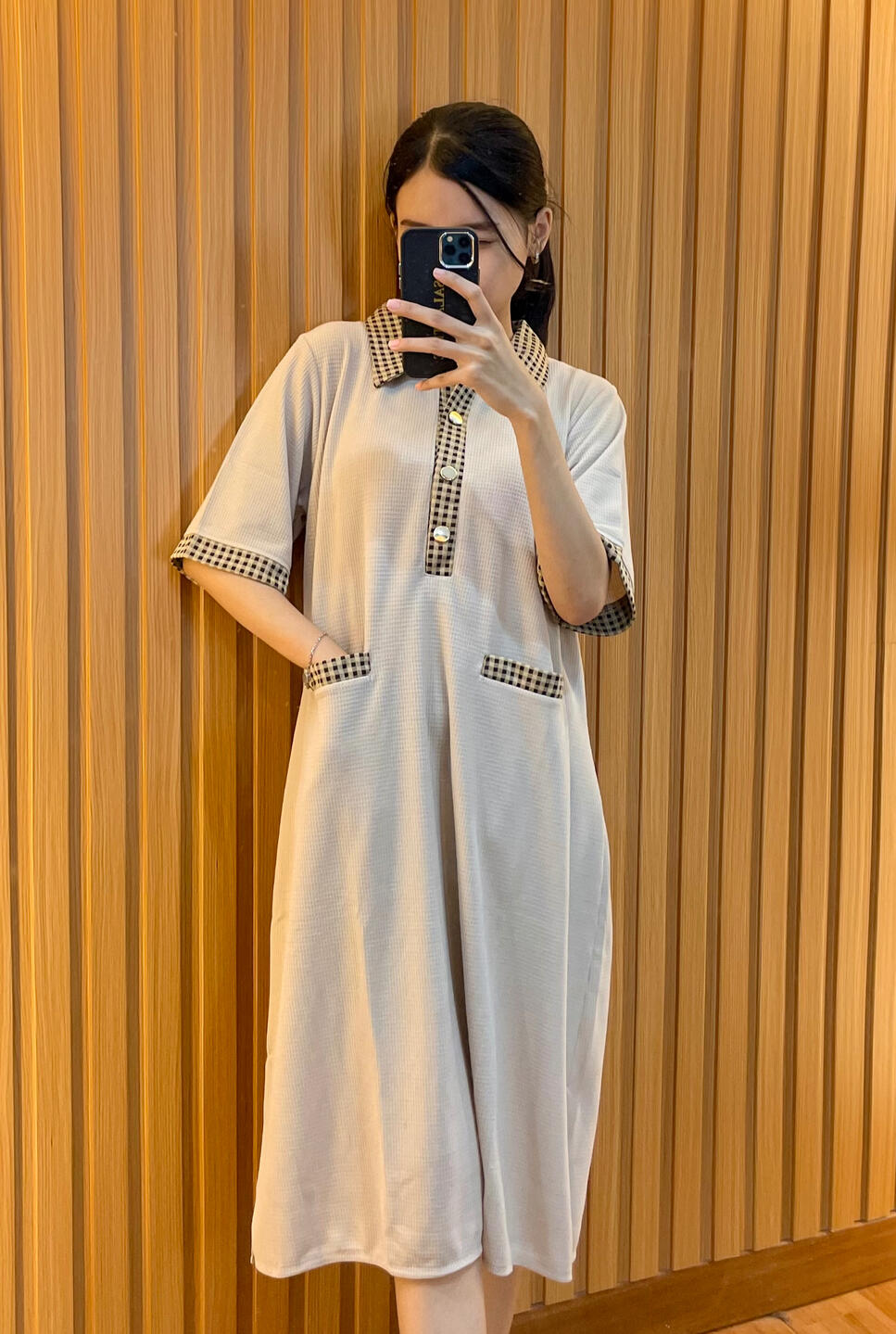 Bahan knit katun yang bermotif kotak gingham dengan kombinasi waffle knit. LD 110 dan 120 cm, dengan panjang 100 cm. Dilengkapi saku dan kancing hidup.Beli 2 dapat FREE knit pants lho!Busui dan Bumil friendly🥰